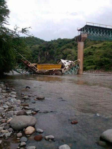 Al parecer, debido al peso que trasladaba un camión de carga, fue lo que provocó que la mitad del puente colapsara, cayendo junto con dicho camión, una camioneta con dos personas a bordo.