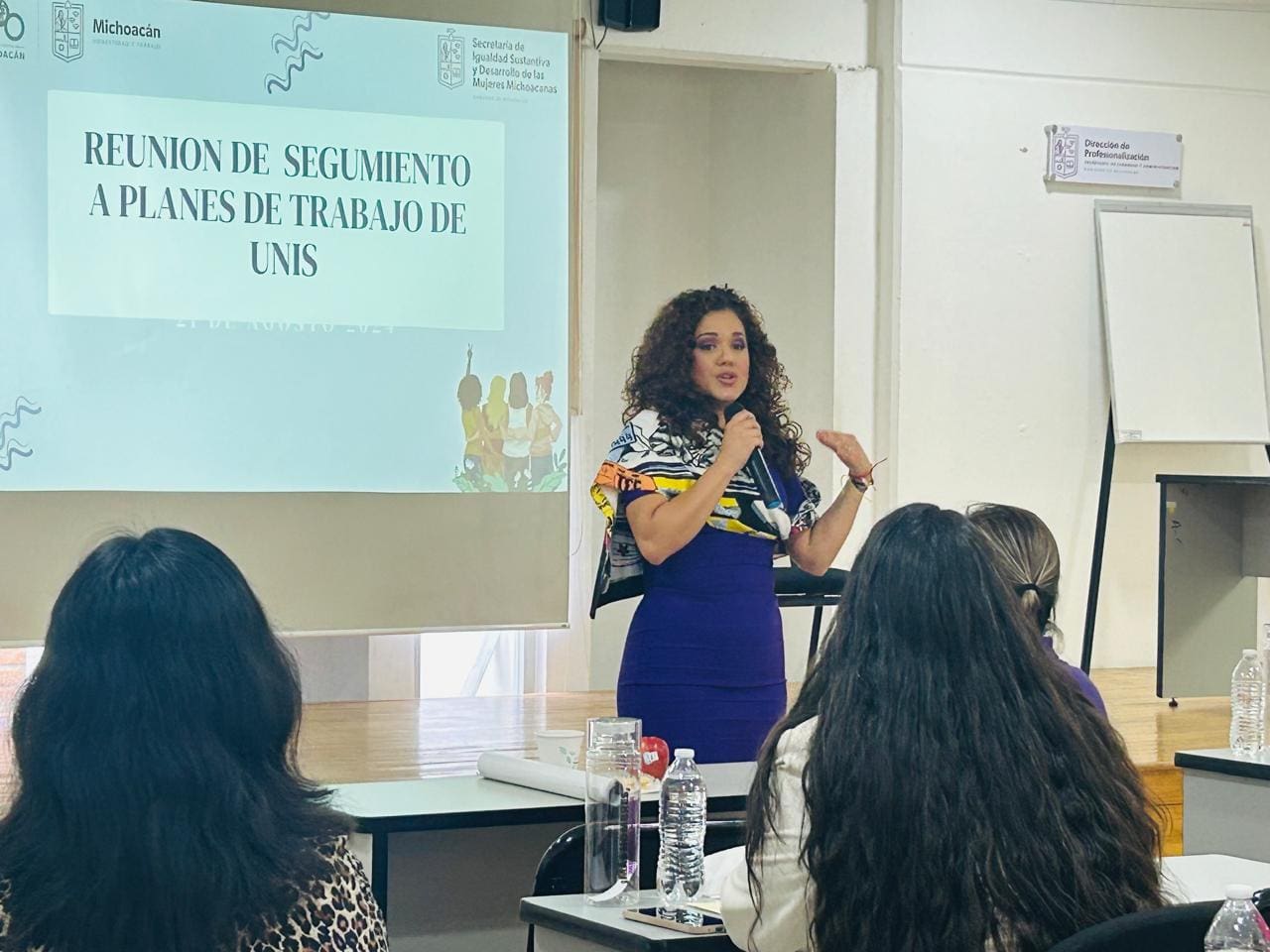 La subsecretaria de Fomento y Desarrollo Integral de las Mujeres, Bárbara Gabriela Ramírez Pedraza, refirió que el objetivo de la reunión fue generar un espacio de reflexión y acompañamiento a las y los enlaces de las UNIS, para la revisión de los avances de las acciones previstas en los programas de este año.