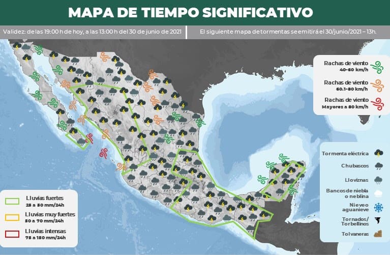 Morelia, Michoacán a 30 de junio del 2021.- La Secretaría de Gobierno a través de la Coordinación Estatal de Protección Civil invitan a la población a mantenerse informado sobre los pronósticos meteorológicos.