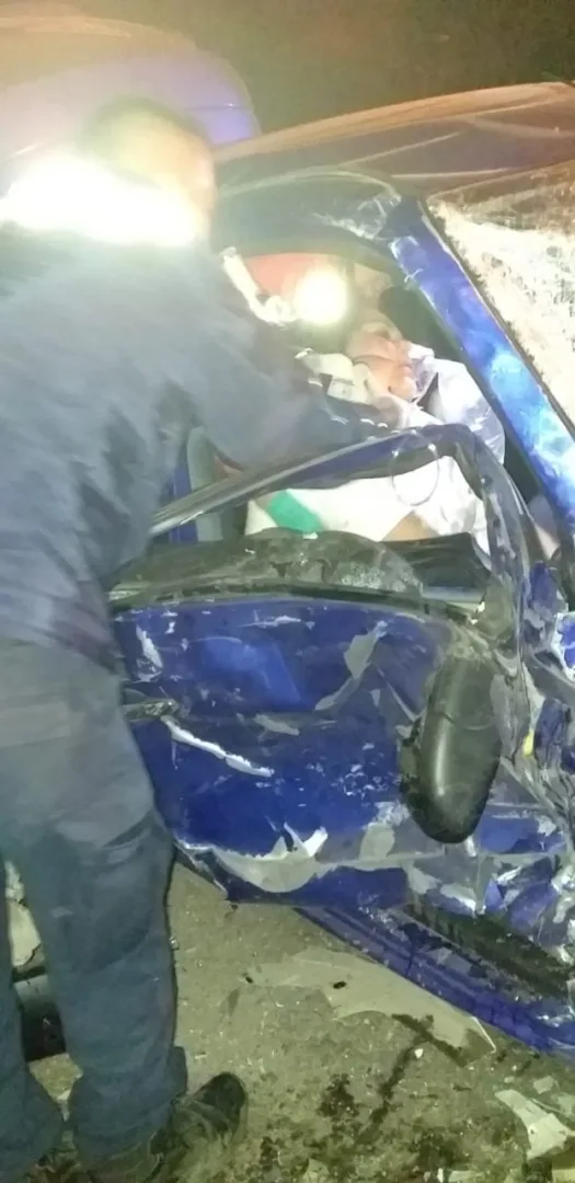 Al arribar al lugar se visualiza el accidente vehicular, con un carro March color azul marino con placas del Estado de México, donde iban a bordo las siguientes personas Pedro X de 27 años de edad, con domicilio en calle Lago Valencia de la Colonia Seminario del mismo estado, presentando posible compromiso en arcos costales, al igual que estado etílico.