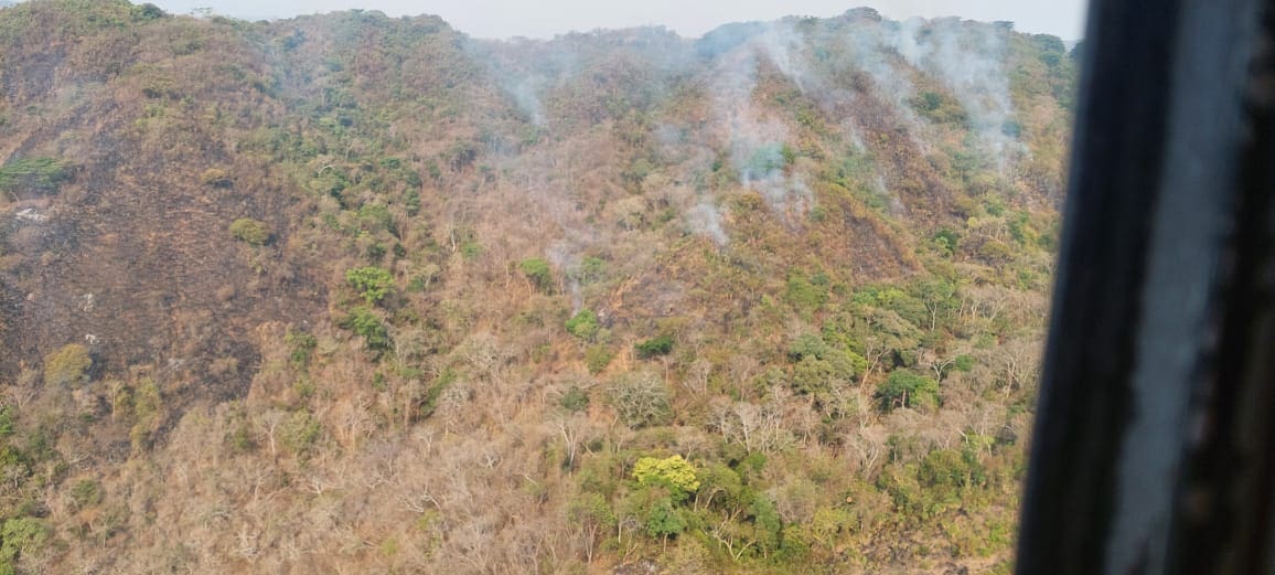 Se suma helicóptero para sofocar incendio forestal en Lázaro Cárdenas