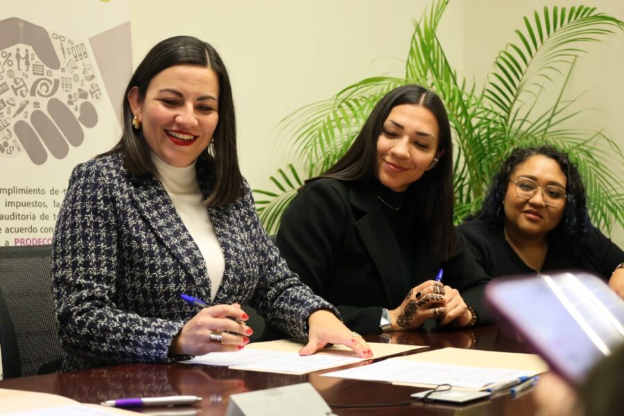 En la firma del acuerdo estuvieron presentes la subdelegada de la Delegación de Prodecon en Michoacán, Dalia Jiménez Martino, y la directora de Atención a Grupos Prioritarios de la Sedebi, Cinthya Guadalupe Negrete Tapia.