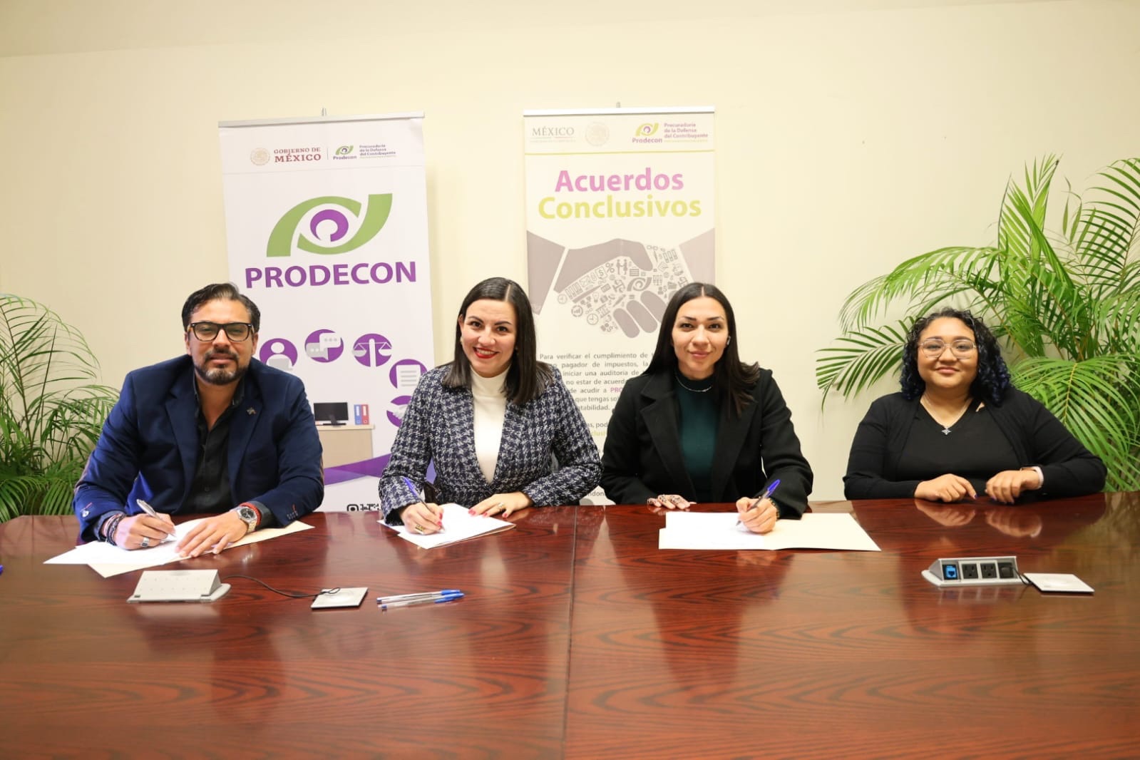 En la firma del acuerdo estuvieron presentes la subdelegada de la Delegación de Prodecon en Michoacán, Dalia Jiménez Martino, y la directora de Atención a Grupos Prioritarios de la Sedebi, Cinthya Guadalupe Negrete Tapia.