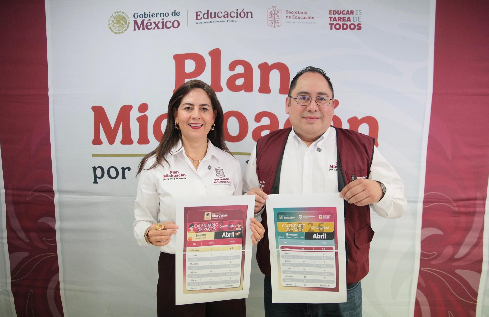 La secretaria de Educación, Gabriela Molina, y el coordinador estatal de Becas para el Bienestar, Juan Pablo Calvillo Tinoco, presentaron los nuevos calendarios para la dispersión de apoyos educativos en la entidad. Esta estrategia, enmarcada en el Plan Michoacán por la Paz y la Justicia, busca brindar certeza a las familias y asegurar que los recursos lleguen de manera oportuna para fortalecer la permanencia escolar en todos los niveles.