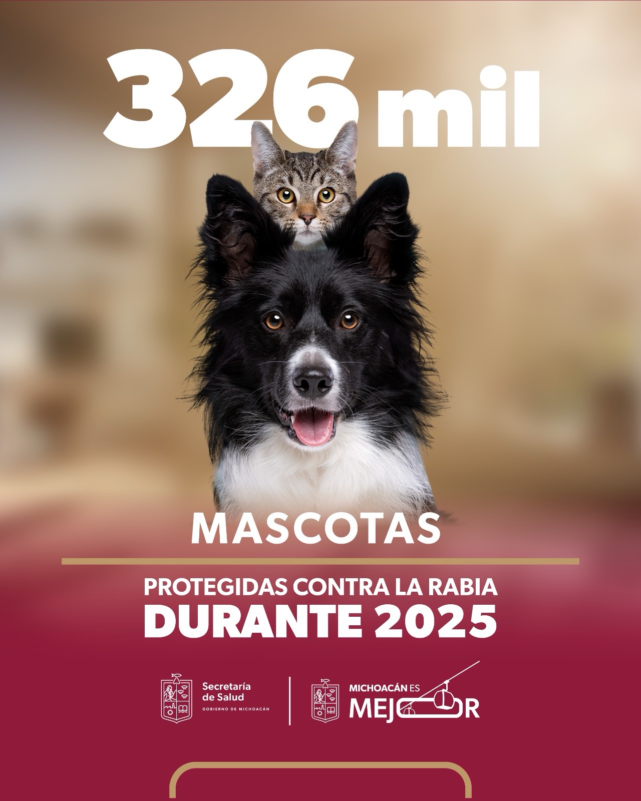 La Secretaría de Salud de Michoacán (SSM) informó que, durante el periodo correspondiente al año 2025, se administraron un total de 326 mil 400 dosis de la vacuna antirrábica a caninos y felinos en la entidad.