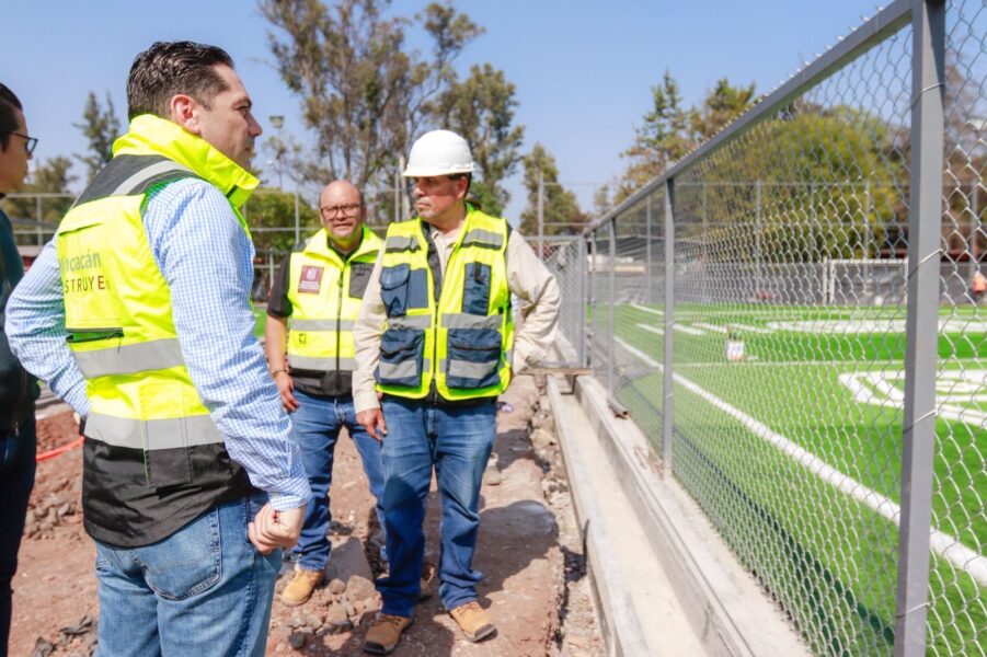 El funcionario estatal supervisó la obra que presenta un avance del 80 por ciento en su construcción y que abonará al desarrollo educativo y deportivo de una de las escuelas con mayor plantilla estudiantil de la capital michoacana.