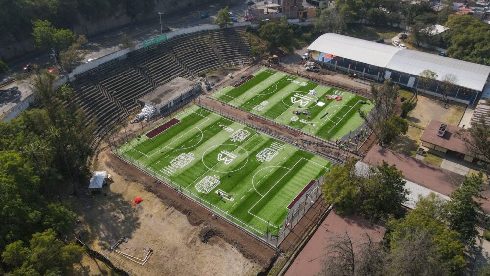 Para beneficiar a cerca de mil 200 estudiantes, se construyen dos nuevas canchas de futbol 7 en la escuela secundaria federal número 2 “Hermanos Flores Magón” de Morelia. Esta acción atiende un compromiso del gobernador Alfredo Ramírez Bedolla, indicó el secretario de Comunicaciones y Obras Públicas (SCOP), Rogelio Zarazúa Sánchez.