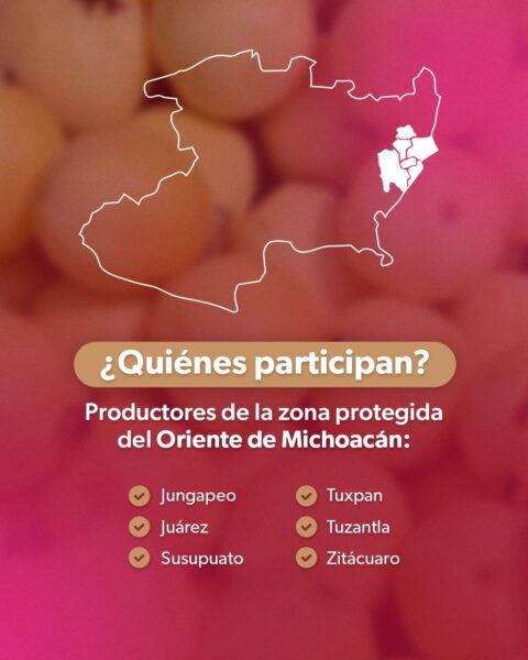 La dependencia estatal detalló que la convocatoria está dirigida específicamente a quienes mantienen huertos en los municipios de Jungapeo, Juárez, Susupuato, Tuxpan, Tuzantla y Zitácuaro. Según la institución, el objetivo de este registro es respaldar la procedencia del producto y facilitar el acceso a condiciones de comercialización diferenciadas.