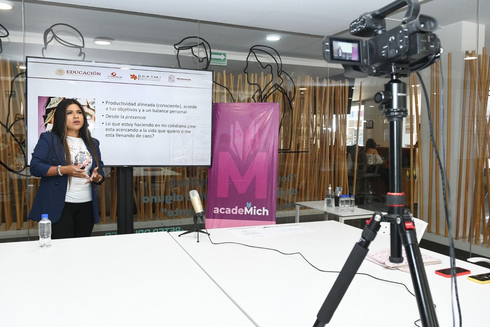 Morelia, Michoacán a 15 de julio del 2023.- Con el objetivo de que las y los emprendedores michoacanos puedan alcanzar sus metas con base a productividad desde la estrategia de la Secretaría de Desarrollo Económico (Sedeco), Academia de Michoacán (acadeMich), se brindó la capacitación, Autoconocimiento hacia una productividad alineada.