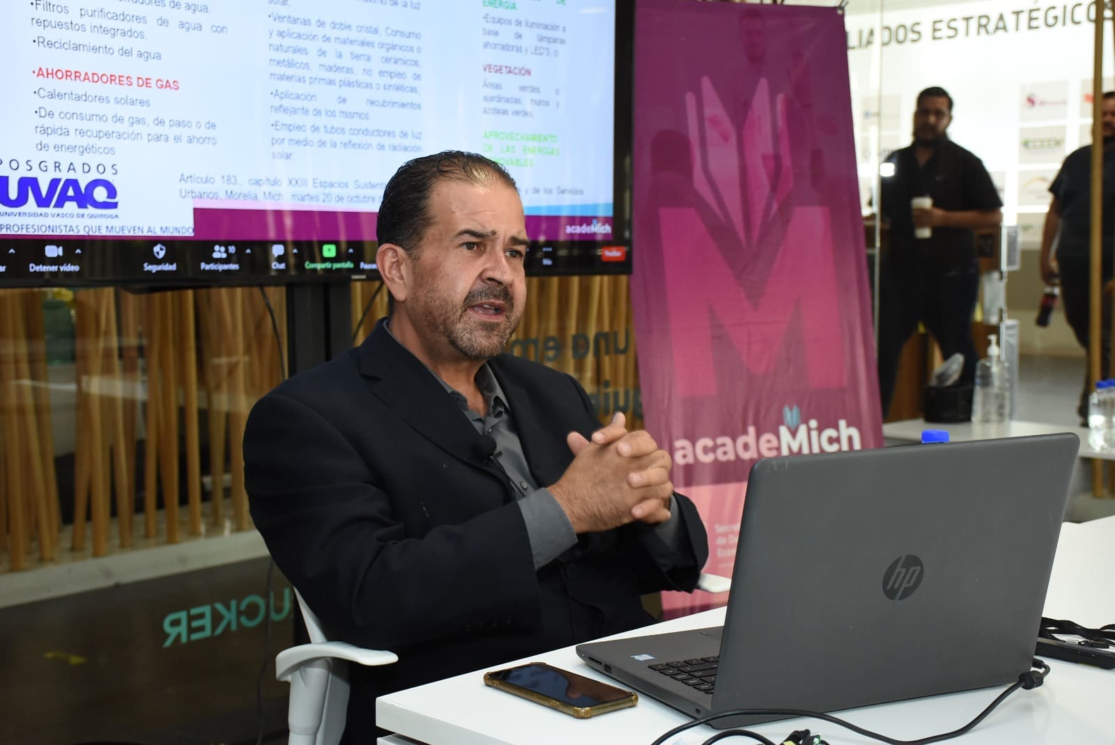 Como parte de la oferta de capacitación de la Secretaría de Desarrollo Económico (Sedeco), a través de la estrategia acadeMich, que esta semana está enfocada en el talento docente de la Universidad Vasco de Quiroga, el también doctor en Arquitectura explicó la metodología Net Zero Energy Building y su reglamentación básica.