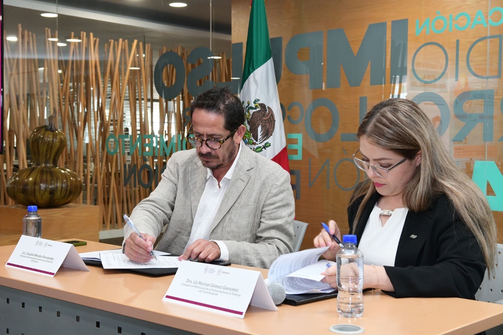 La firma la realizaron el secretario de Desarrollo Económico, Claudio Méndez Fernández, y la delegada en Michoacán de la Procuraduría de la Defensa del Contribuyente, Liz Marisol Gómez González.