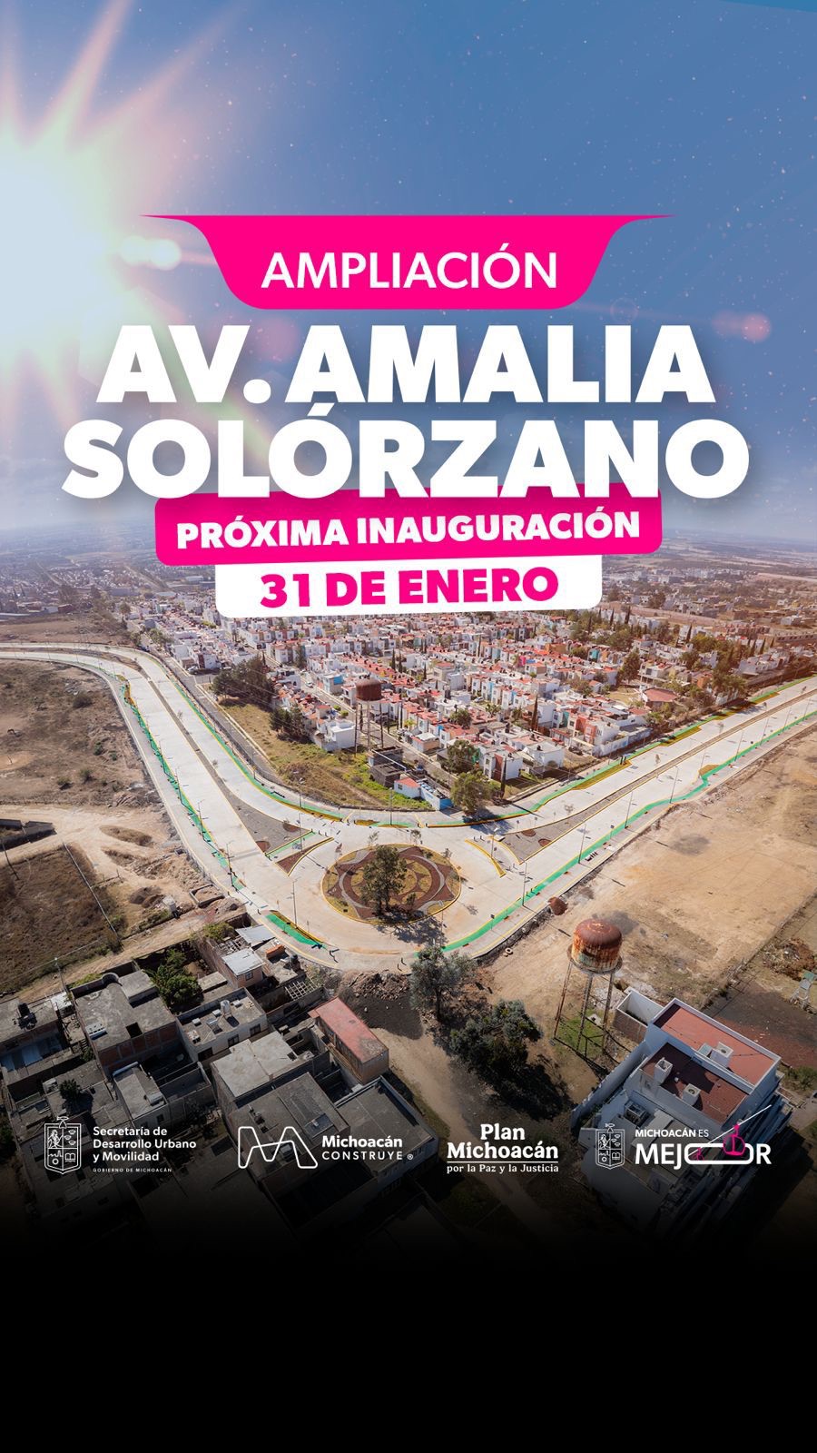 La titular de la Secretaría de Desarrollo Urbano y Movilidad (Sedum), Gladyz Butanda Macías, informó que la obra de ampliación de la avenida Amalia Solórzano se encuentra en su fase final y será inaugurada el próximo 31 de enero por el gobernador Alfredo Ramírez Bedolla.