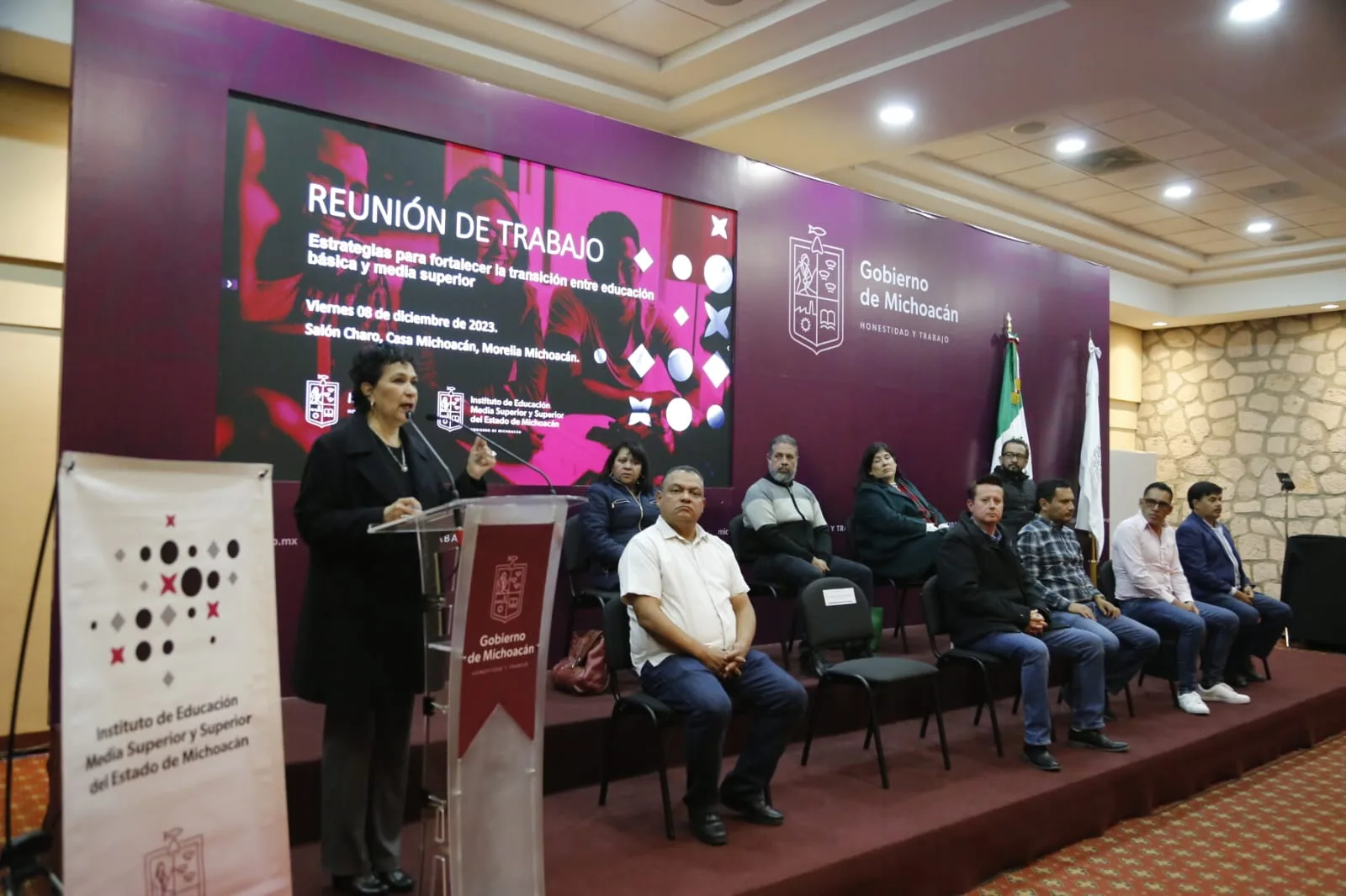 Morelia, Michoacán, 9 diciembre de 2023.- Con el propósito de hacer frente a la desafiliación escolar en jóvenes que salen de secundaria, se realizó la reunión de Estrategias para fortalecer la transición entre educación básica y media superior, donde la Secretaría de Educación del Estado (SEE) suma esfuerzos con autoridades de nivel bachillerato.