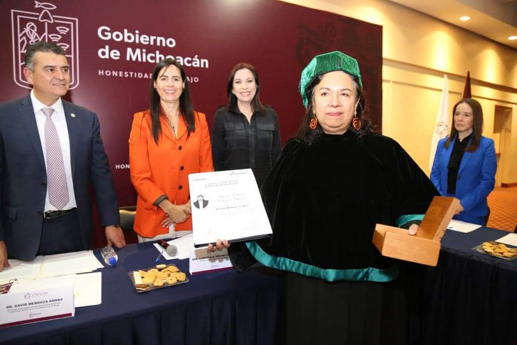 La secretaria de Educación, Gabriela Molina, entregó el Doctorado Honoris Causa a la doctora María Elena Chan Núñez