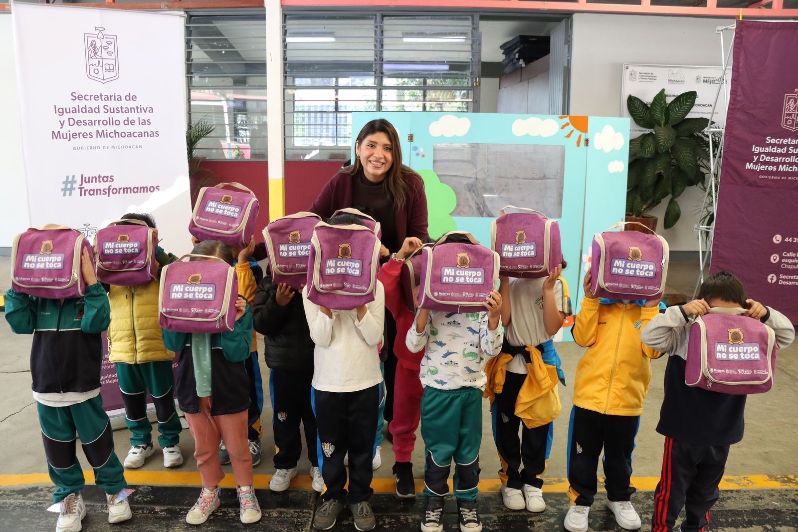 Alejandra Anguiano, titular de la Secretaría de Igualdad Sustantiva y Desarrollo de las Mujeres Michoacanas (Seimujer), visitó el Jardín de Niños Xicoténcatl para implementar la estrategia pedagógica “Capicuento”, enfocada en la prevención del abuso sexual infantil.