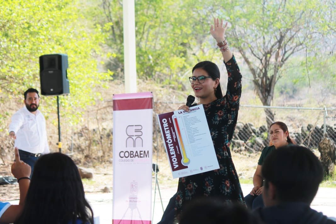 A su vez, se impartió una charla a estudiantes, docentes y personal del Colegio de Bachilleres de Michoacán (Cobaem) plantel Cojumatlán de Regules, impartida por la psicóloga Fabiola Lara, experta en género y violencia de pareja de la Seimujer, quien brindó información y reflexiones sobre los estereotipos de amor romántico y cómo estos pueden conducir a relaciones tóxicas y violentas.
