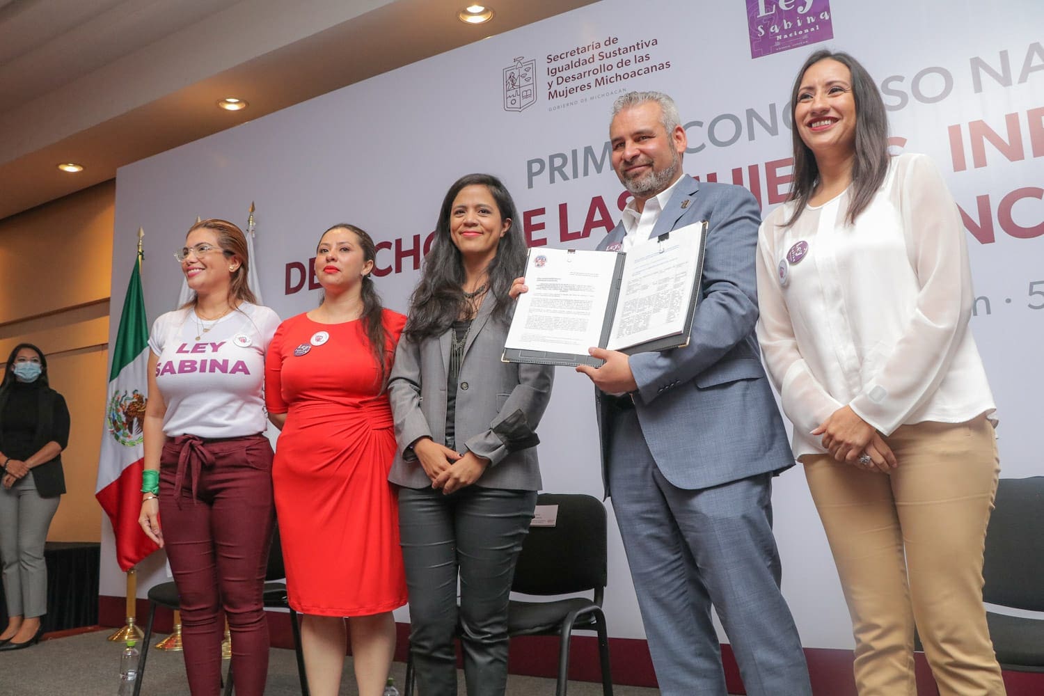 Morelia, Michoacán, a 05 de junio de 2022.- La Secretaría de Igualdad Sustantiva y Desarrollo de las Mujeres Michoacanas, en coordinación con integrantes el Frente Nacional de Deudores Alimentarios, entregaron la Ley Sabina al gobernador Alfredo Ramírez Bedolla, en el marco del Primer Congreso Nacional por los Derechos de las Mujeres, Infancias y Adolescencia Contra las Violencias Alimentarias.