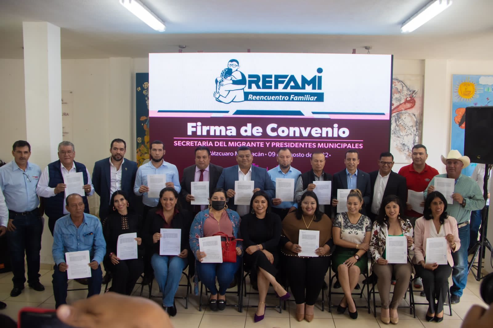 Desde la Casa de la Cultura de Pátzcuaro en donde 21 presidencias municipales signaron el convenio de colaboración, Fraga Gutiérrez resaltó que Refami representa el compromiso y apertura del gobernador Alfredo Ramírez Bedolla para atender al sector migrante michoacano, toda vez que no existe un municipio en el que no existan familias que tengan relación con la migración.