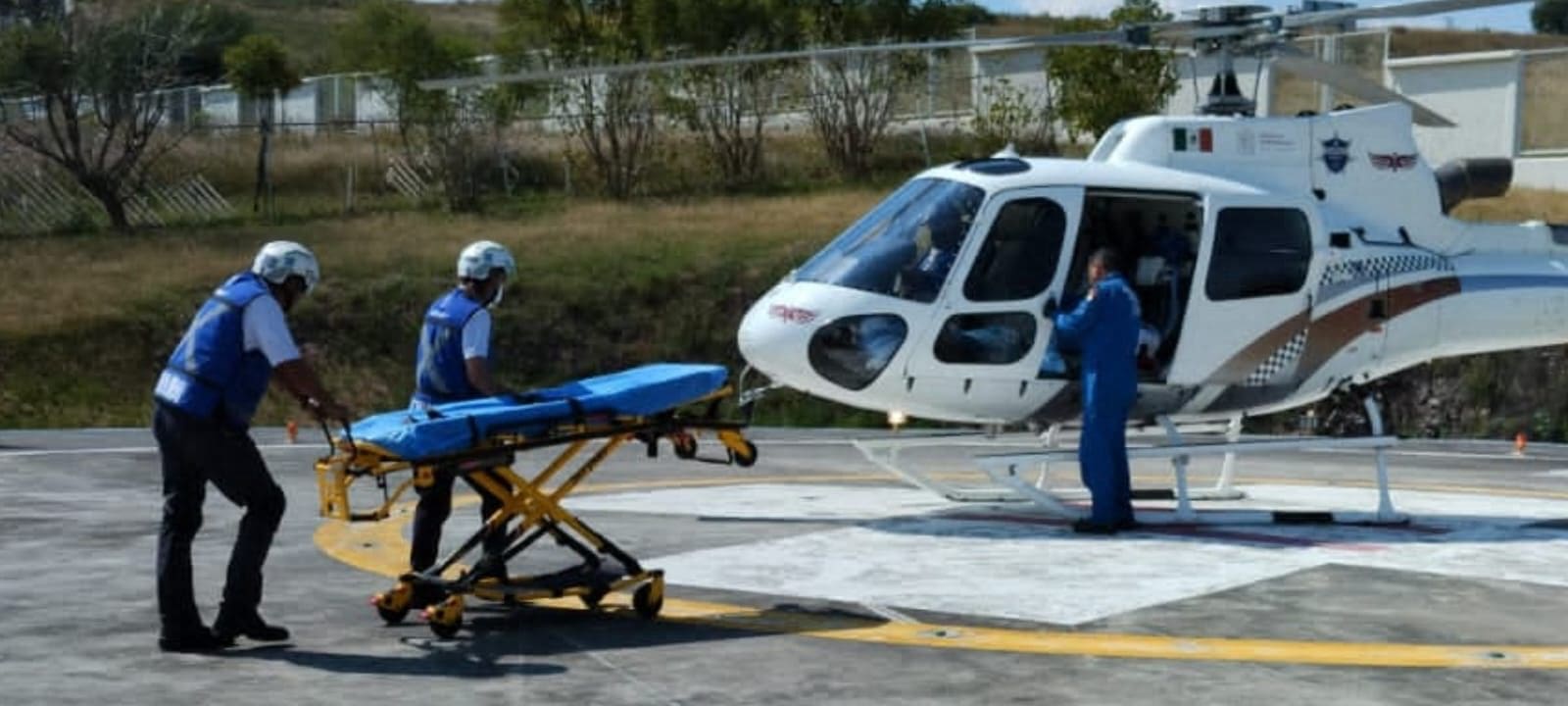 Tacámbaro-Morelia, Michoacán, 3 de noviembre del 2023.- Producto de la oportuna atención a los llamados de urgencias, los efectivos de la Dirección de Servicios Aéreos de la Secretaría de Seguridad Pública (SSP), trasladaron de manera exitosa a un paciente con hemorragia cerebral y lesiones renales, desde el municipio de Tacámbaro a un nosocomio especializado en Morelia.
