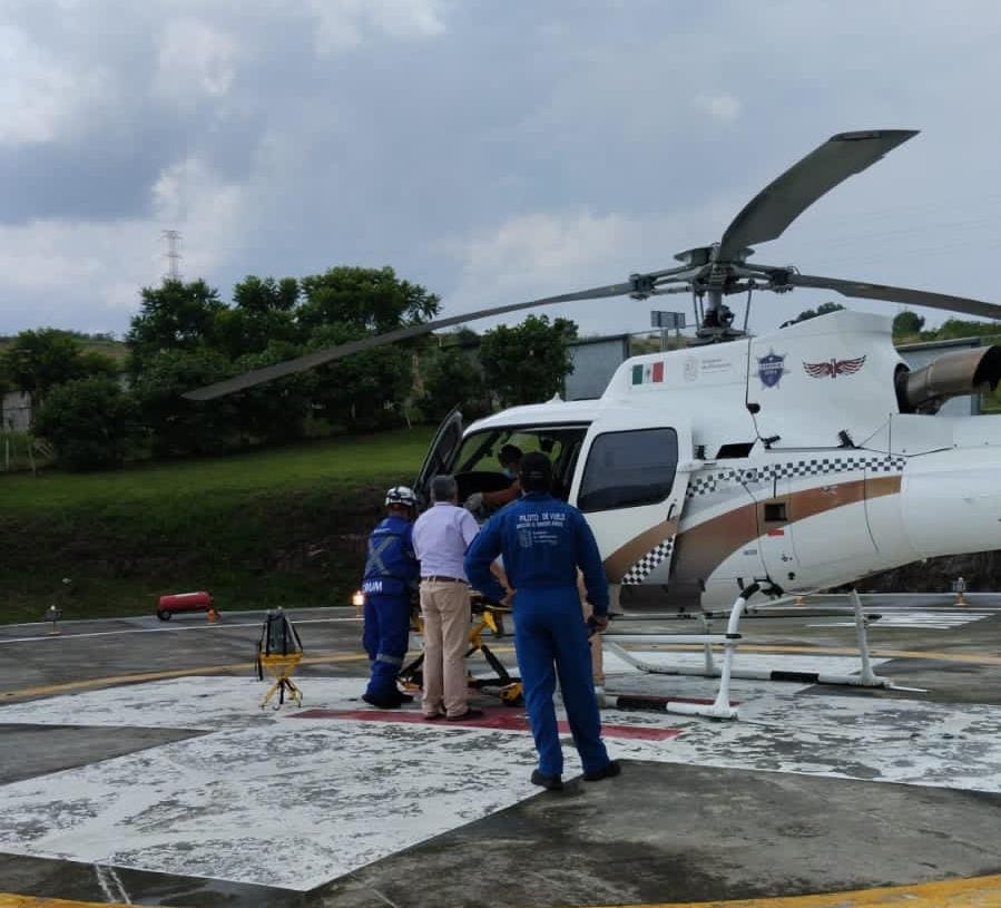 Los paramédicos de vuelo de la SSP junto a la aeronave, se movilizaron de inmediato a un nosocomio ubicado en el municipio de Tuxpan, donde se encontraba un paciente de 42 años de edad con diagnóstico de enfermedad vascular cerebral (EVC) Hemorrágica.