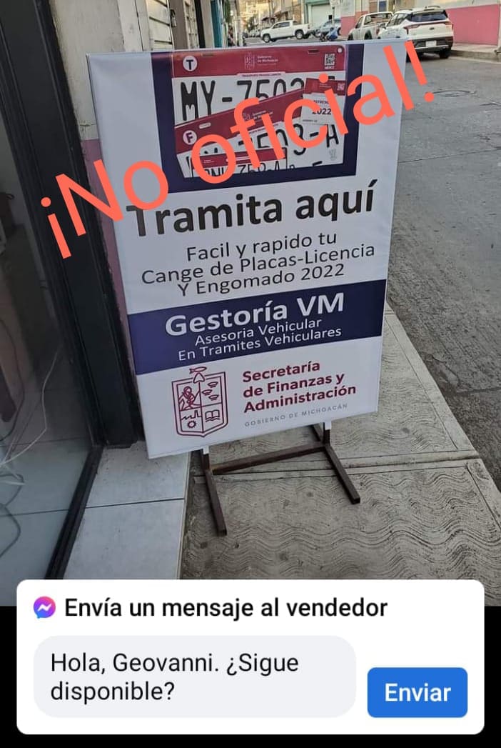 Morelia, Michoacán, 21 de enero del 2022.- La Secretaría de Finanzas y Administración del Gobierno de Michoacán, hace un llamado a la ciudadanía con la intención de que no sea víctima de presuntos defraudadores que se anuncian en locales y en redes sociales, cuyos trámites carecen totalmente de validez oficial y pueden representar un verdadero problema para quienes recurran a sus supuestas gestorías.