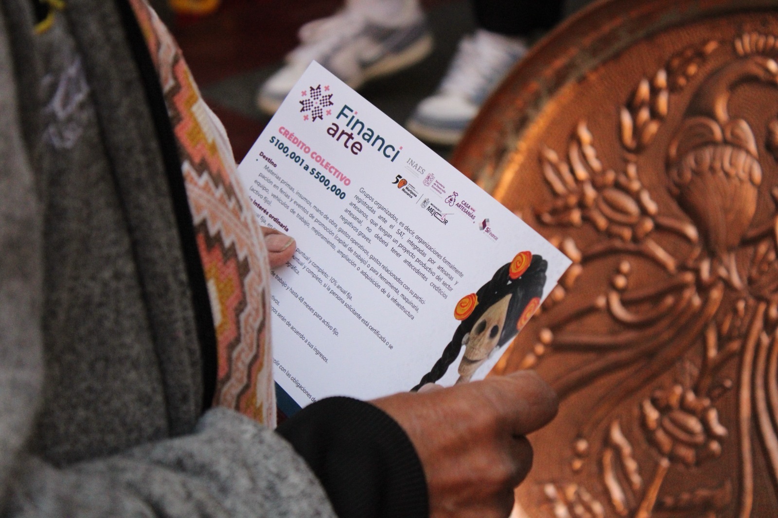 - Crédito colectivo: De 100 mil a 500 mil pesos, para grupos de trabajo u organizaciones artesanales.