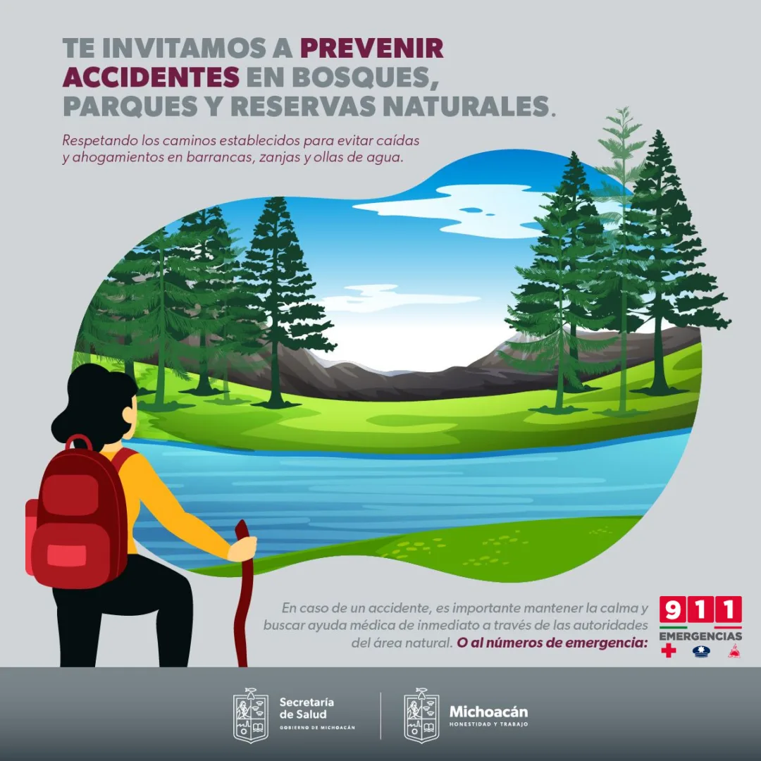 Morelia, Michoacán, 18 de agosto de 2023.- En esta temporada vacacional, la Secretaría de Salud de Michoacán (SSM) llama a los turistas a respetar los caminos e indicaciones establecidas en bosques, parques y reservas naturales para prevenir caídas, fracturas y ahogamientos en estos espacios recreativos.