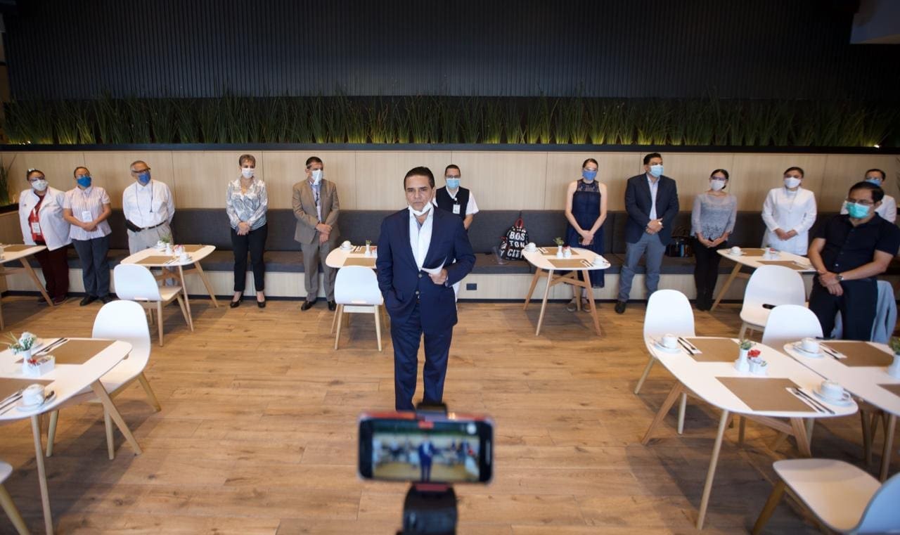 Silvano Aureoles agradeció a nombre del Gobierno del Estado, la voluntad de los empresarios para ofrecer habitaciones al personal de salud, espacios que se convertirán en auténticos cuartos de paz y descanso, después de las duras y largas jornadas que viven y estarán viviendo con mayor intensidad conforme avance la pandemia, por cuidar la vida de las familias michoacanas.