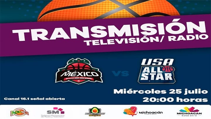 Morelia, Michoacán, a 24 de julio de 2018.- Para que toda la afición tenga oportunidad de seguir el desempeño de sus ídolos, este miércoles 25 de julio a partir de las 8:00 de la noche, se transmitirá en vivo el juego de la Selección Nacional de Baloncesto contra USA All Stars, a través de la señal del Sistema Michoacano de Radio y Televisión (SMRTV).
