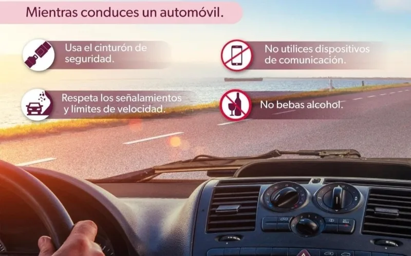 Respetar los límites de velocidad, usar cinturón de seguridad, obedecer en todo momento las señales de tránsito así como evitar rebasar por la derecha o detenerse en curvas son las recomendaciones principales para garantizar que los conductores lleguen con bien a su destino.