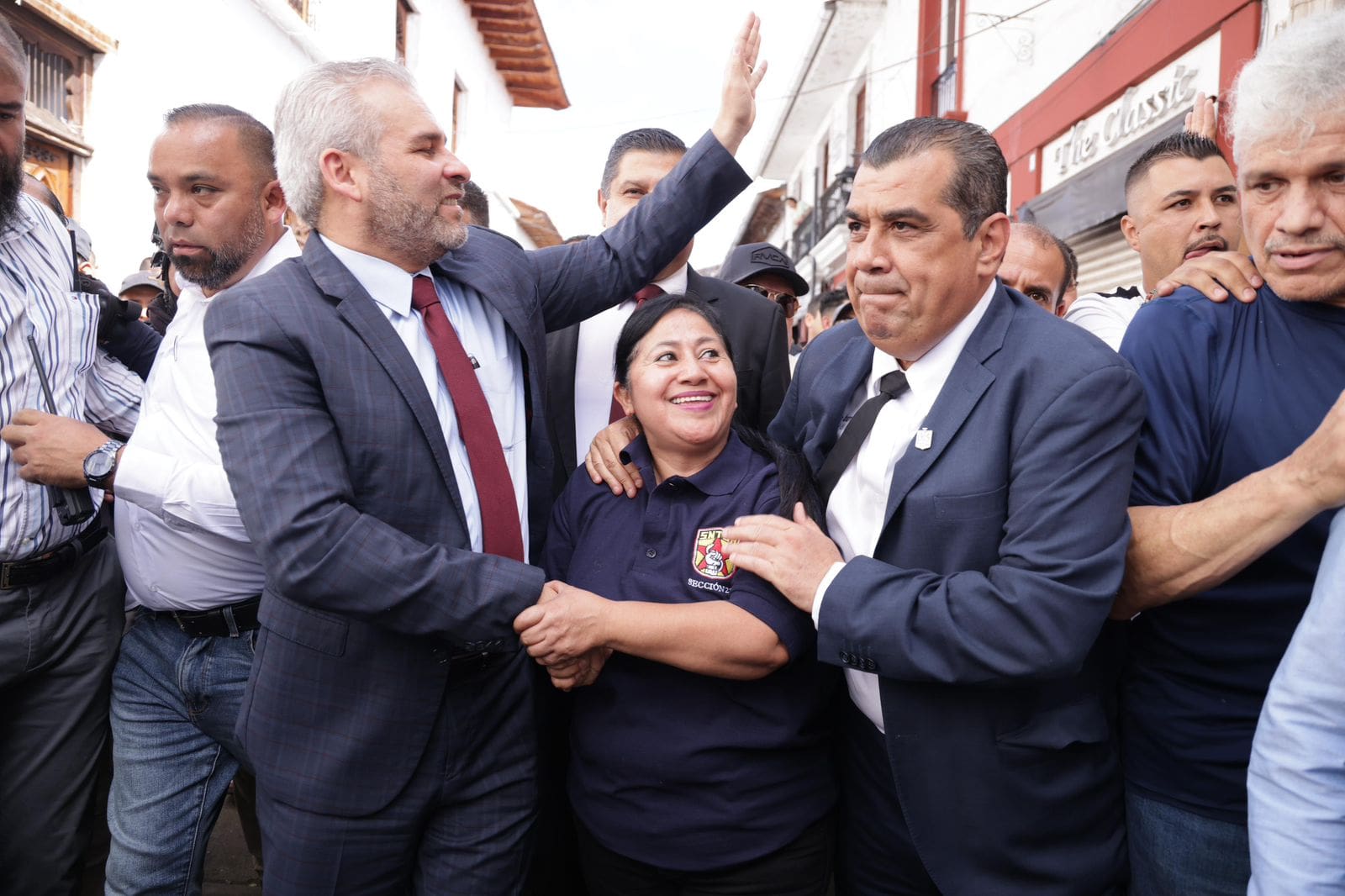 Acompañaron al mandatario el secretario de Gobierno, Elías Ibarra Torres; Ignacio Campos Equihua, presidente municipal de Uruapan; Julieta García Zepeda, presidenta de la Mesa Directiva del Congreso del Estado; Adrián López Solís, fiscal General del Estado; Jorge Reséndiz García, presidente del Supremo Tribunal de Justicia y del Consejo del Poder Judicial del Estado de Michoacán; así como senadores, diputados federales y estatales, funcionarios estatales y municipales.