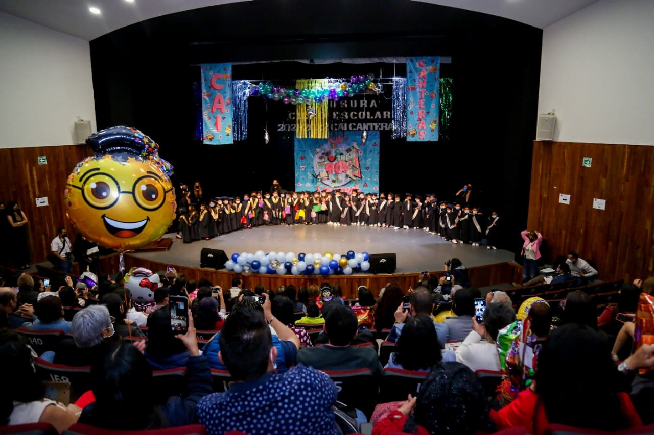 Por su parte, María Esther Ramírez Hernández, directora del CAI Lomas de Canteras, señaló que el ciclo escolar 2021-2022 tuvo un inicio complicado, ya que éste inició de manera virtual, sin embargo, a mitad de curso, pudieron retomarse las clases presenciales, lo que ayudó a que la generación que egresa volviera a conectar con sus compañeros y maestras fortaleciendo el vinculo afectivo vital para su desarrollo integral.