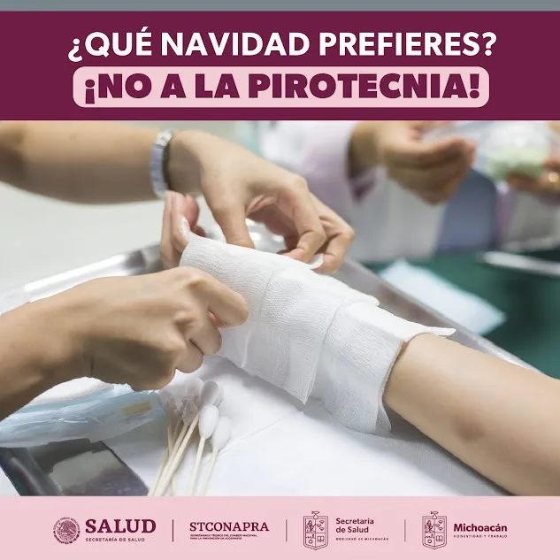 Morelia, Michoacán, 16 diciembre de 2023.- La Secretaría de Salud de Michoacán (SSM) exhorta a madres y padres de familia a evitar la compra y manipulación de pirotecnia durante las festividades decembrinas para prevenir accidentes, especialmente en menores de edad.