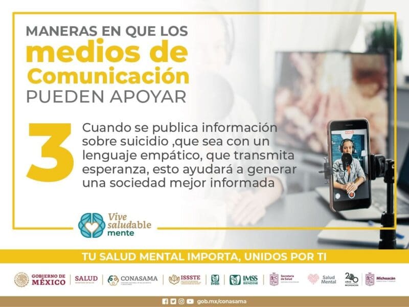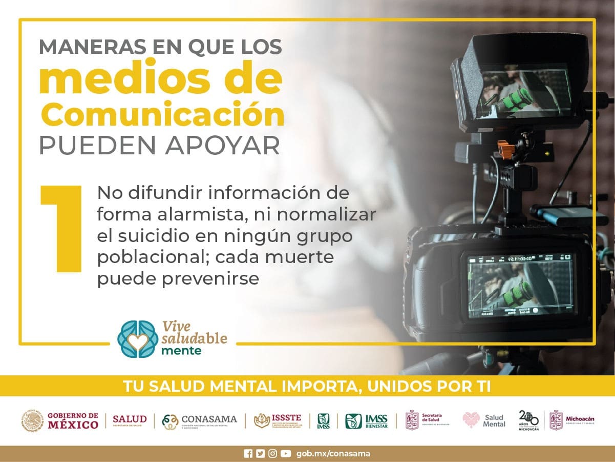 Una cobertura responsable puede contribuir a la prevención del suicidio, reducir el riesgo de comportamientos imitativos y motivar a las personas a buscar ayuda. En Michoacán, quienes necesiten apoyo psicológico pueden acudir a 40 centros de salud y a cinco Centros Comunitarios de Salud Mental y Adicciones (Cecosama) en Morelia, Uruapan, Zitácuaro, Lázaro Cárdenas y Zamora. Además, está disponible la línea Hablemoos, que ofrece atención las 24 horas al 443 314 1617 y al 443 315 9037.
