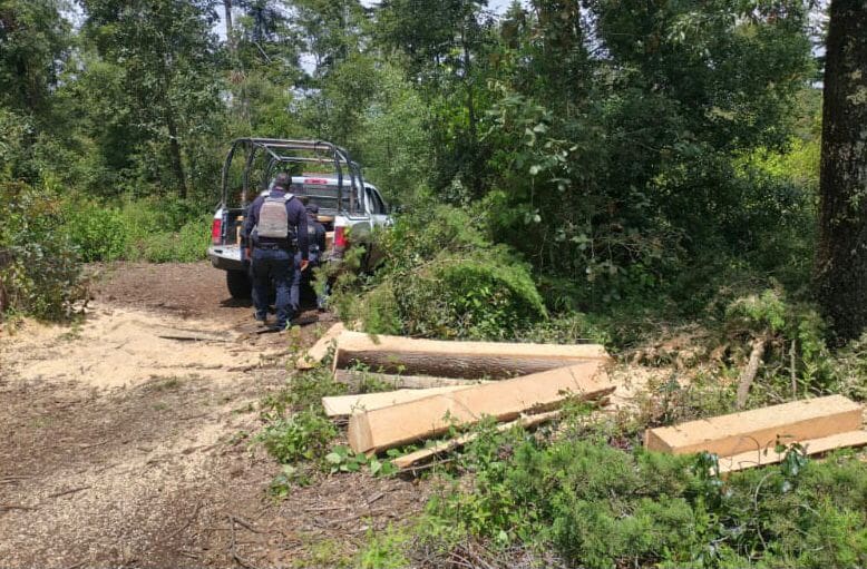 En el sitio se aseguraron 10 piezas de madera de Cedro. Mientras que se mantiene el dispositivo para dar con el presunto responsable y mantener segura la zona.