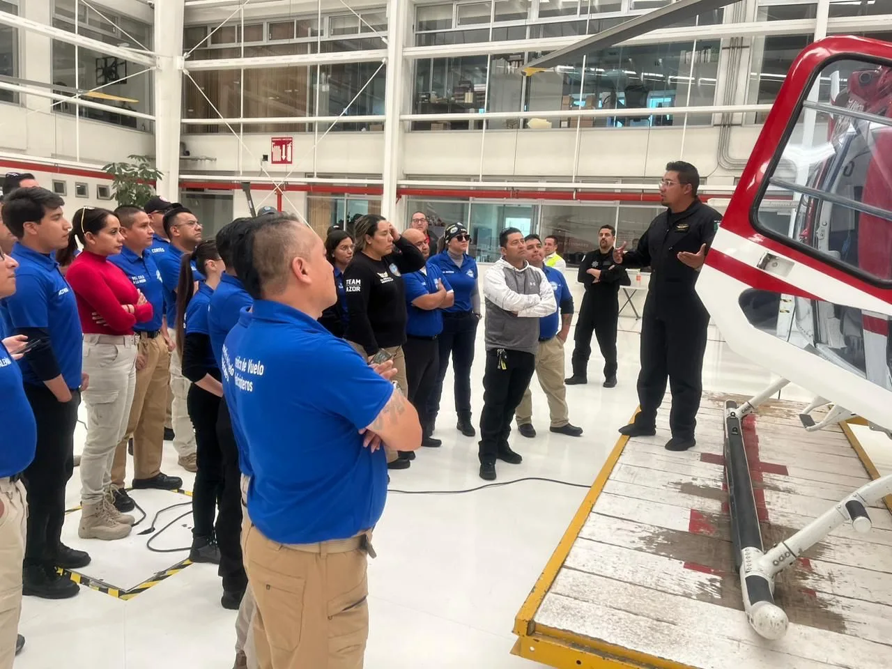 De igual manera, y como parte de los aprendizajes de la materia de seguridad operacional, las y los asistentes participaron en el Curso de Medidas Integrales para la Seguridad en la Evacuación Aeromédica que impartió el personal de la Unidad de Rescate Aéreo del Gobierno del Estado de México, conocidos como “Relámpagos”.