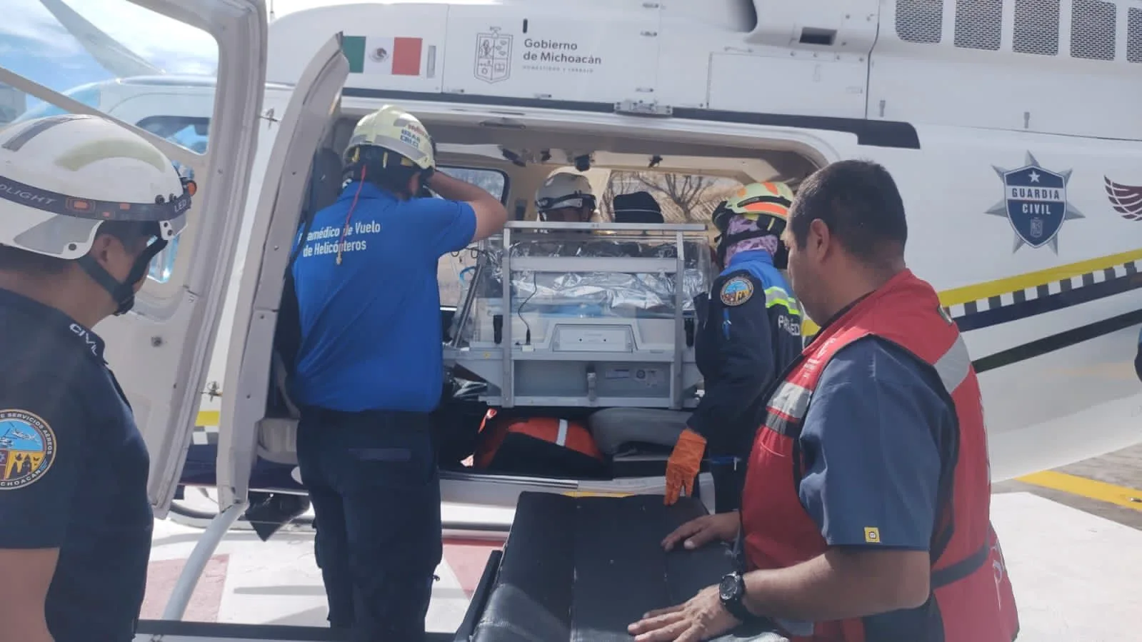 Una vez registrado el reporte, el cuerpo de paramédicos de vuelo emprendió acciones para dirigirse hacia este municipio y una vez ahí, se preparó a la bebé para su viaje.