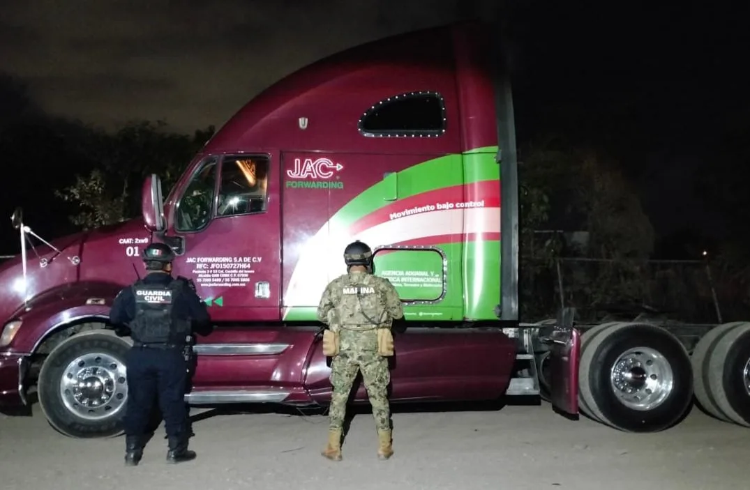 SSP y Semar aseguran tractocamión y contenedor robado en LC