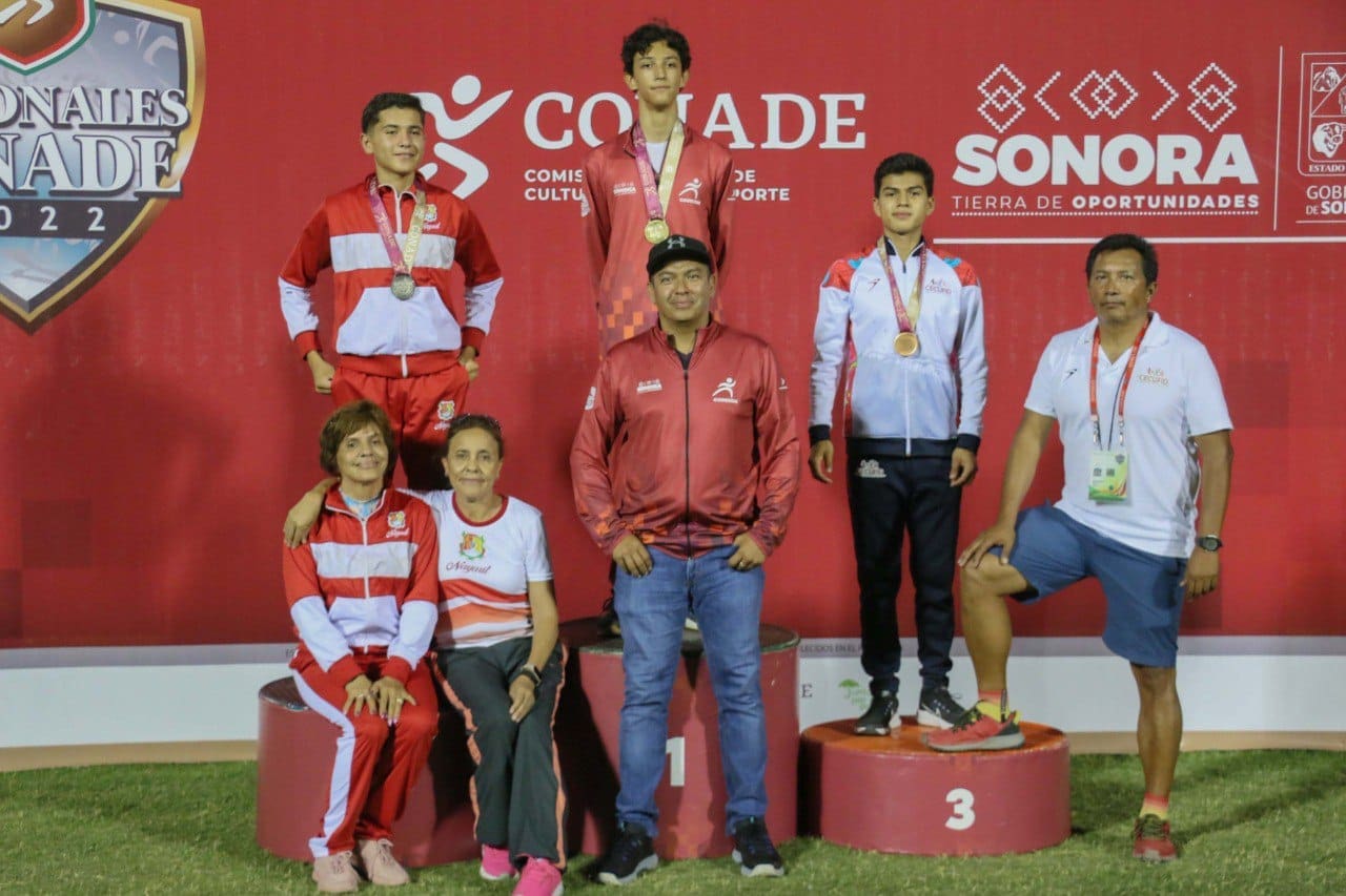 Hermosillo, Sonora.- Hasta el momento, Michoacán alcanzó las 45 medallas gracias a las cuatro platas y un bronce que se consiguieron en esta gran jornada en las disciplinas de atletismo y canotaje en los Juegos Nacionales Conade 2022, que se desarrollan simultáneamente en el Estadio Héroe de Nacozari en Hermosillo, Sonora, y en la Presa Abelardo L. Rodríguez de Tijuana, Baja California, respectivamente.