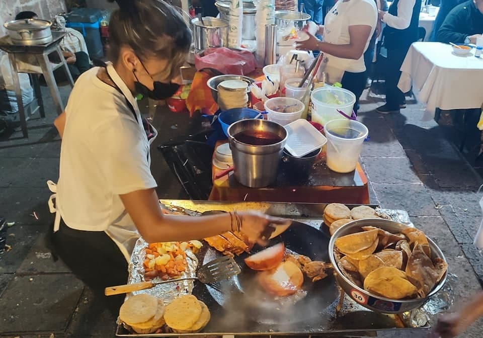 En esta actividad de fin de semana las y los ciudadanos deleitaron su paladar con buñuelos, tamales, corundas, enchiladas y demás antojitos mexicanos que ofrecieron los oferentes del pasillo gastronómico que se ubican en el Mercado Miguel Hidalgo, mejor conocido como San Agustín.