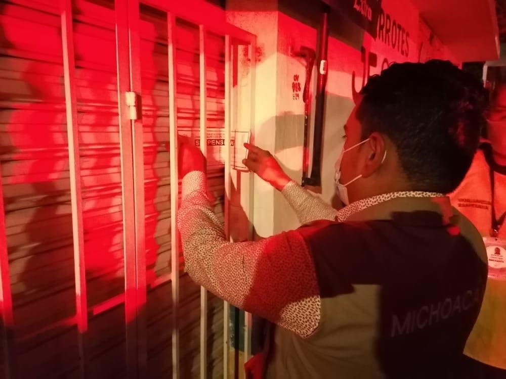 Morelia, Michoacán, a 31 de enero de 2021.- Como parte de las acciones de vigilancia y fomento sanitario, por parte de la Secretaría de Salud de Michoacán (SSM), a través de los Guardianes de la Salud, nueve establecimientos fueron suspendidos en Morelia.