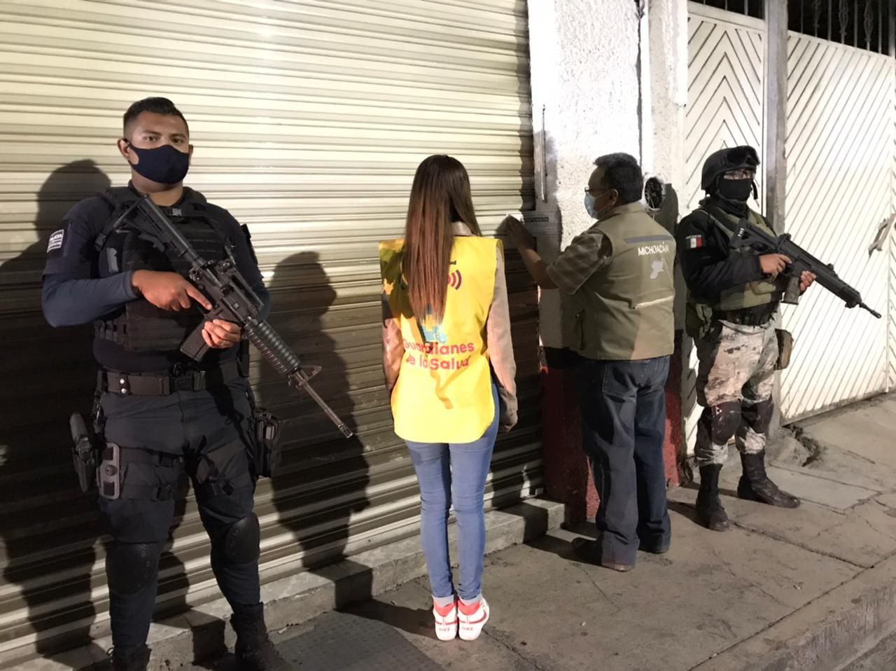 Durante el día, los Guardianes de la Salud también colocaron carteles en los establecimientos, repartieron volantes y cubrebocas a la ciudadanía.