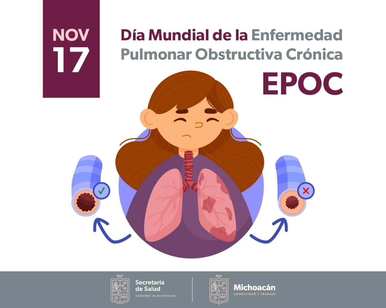 De acuerdo con Ramón Antonio Hernández Martínez, responsable del programa estatal de Acción Específica de Enfermedades Respiratorias Infecciosas de la SSM, la EPOC es una enfermedad que reduce el flujo de aire que entra a los pulmones, provocando cuadros prolongados de tos, expectoración y falta de aire.