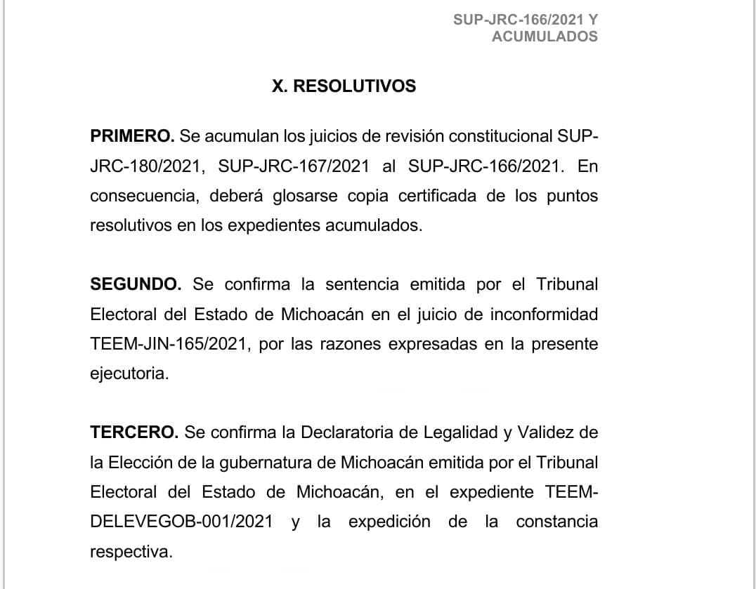 En dicha sesión, todo parece indicar que se estaría ratificando el triunfo de Alfredo Ramírez Bedolla, ratificando así, la sentencia emitida por el Tribunal Electoral del Estado de Michoacán y por ende, la constancia entregada días pasados al hasta ahora, “Gobernador Electo”.