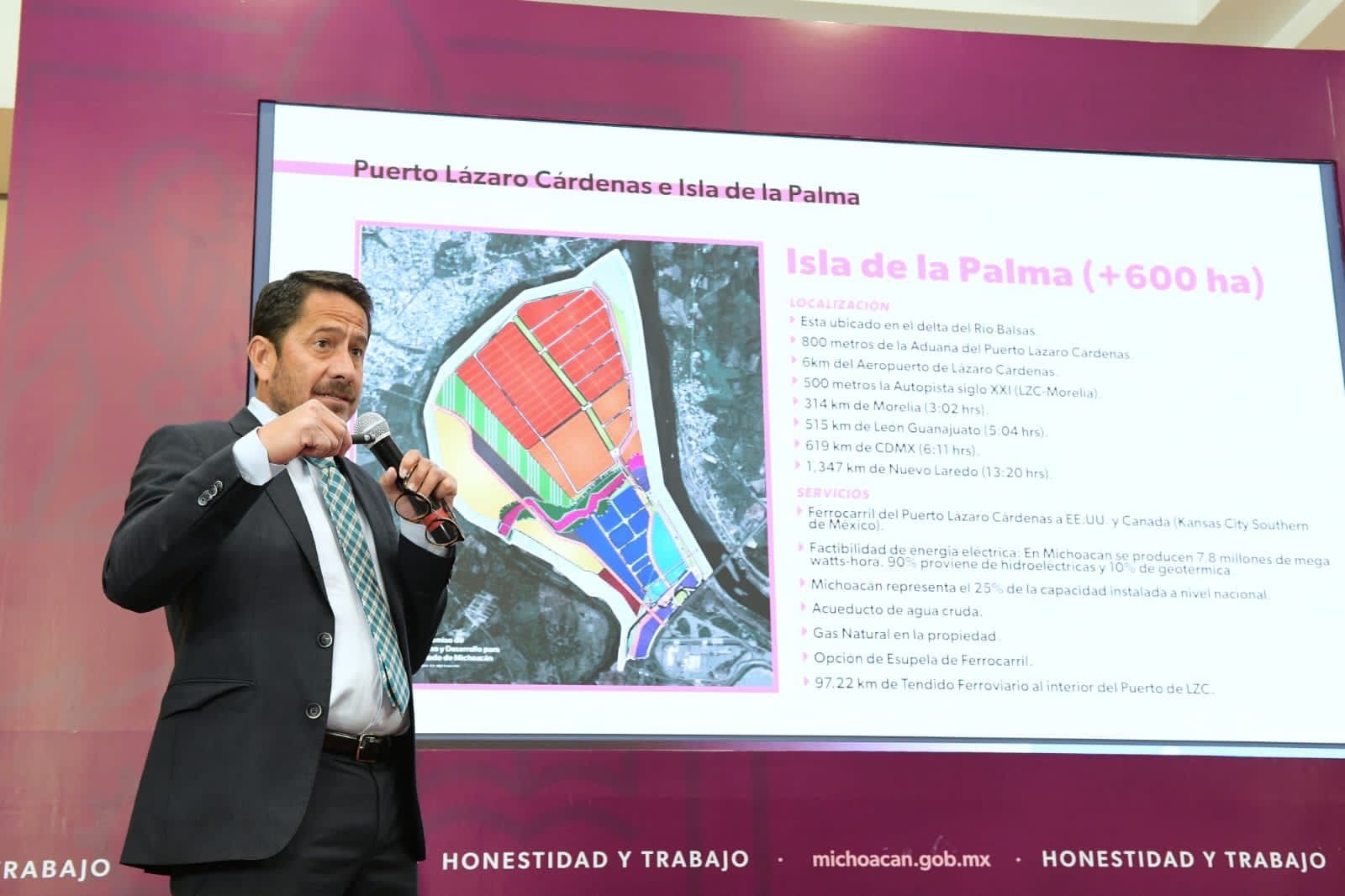 Detalló que se trabaja bajo un esquema de colaboración empresarial o “joint venture”, en los que Michoacán está ofreciendo el puerto Lázaro Cárdenas y los proyectos de parques logístico industriales como la Isla de la Palma y Bajío I, así como el de capital privado ElevaPark.
