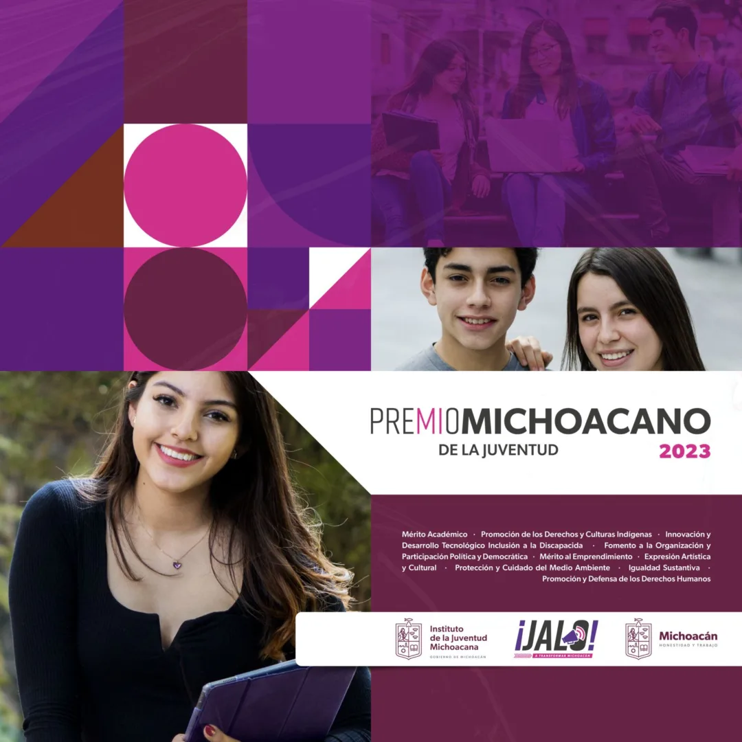 Morelia, Michoacán, 2 de julio de 2023.- El Instituto de la Juventud Michoacana (Ijumich) invita a las mujeres y hombres jóvenes del estado de 15 a 29 años a participar en el Premio de la Juventud 2023, de forma individual o en grupo, para reconocer públicamente sus logros, talentos, aportaciones y compromiso social.