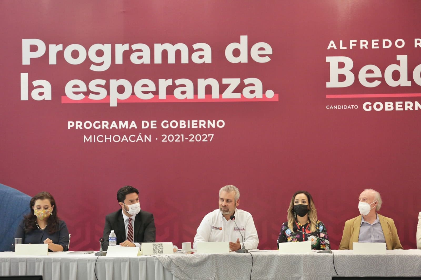 Morelia, Michoacán, 29 de mayo del 2021.- Durante la presentación de su Programa de Gobierno 2021-2027, el candidato de Morena-PT a la gubernatura, Alfredo Ramírez Bedolla, afirmó que la transformación de Michoacán será impulsada por un gabinete de alto nivel; “tendremos a los que saben en nuestro gobierno, tomando las mejores decisiones para la gente”.