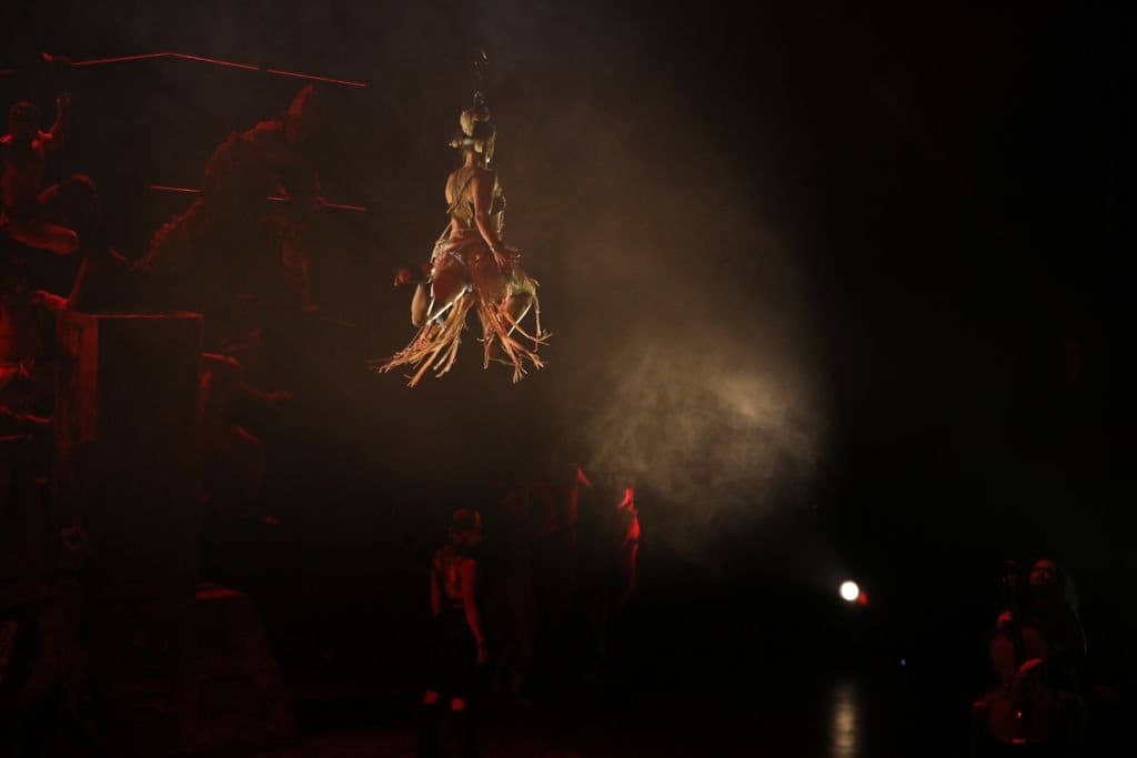 Con una combinación de las danzas aérea, contemporánea, tradicional, contorsión y acrobacia, así como arte circense y videomapping, se llevó a los espectadores a este recorrido por la historia de la tierra purépecha, su cultura, tradición, artesanía y personajes.