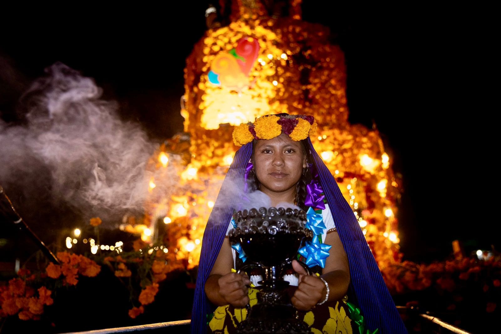 Antes del espectáculo, los visitantes pueden explorar a pie los manantiales, disfrutando del aroma del cempasúchil y la cálida luz de las velas que iluminan el trayecto, creando una atmósfera memorable.