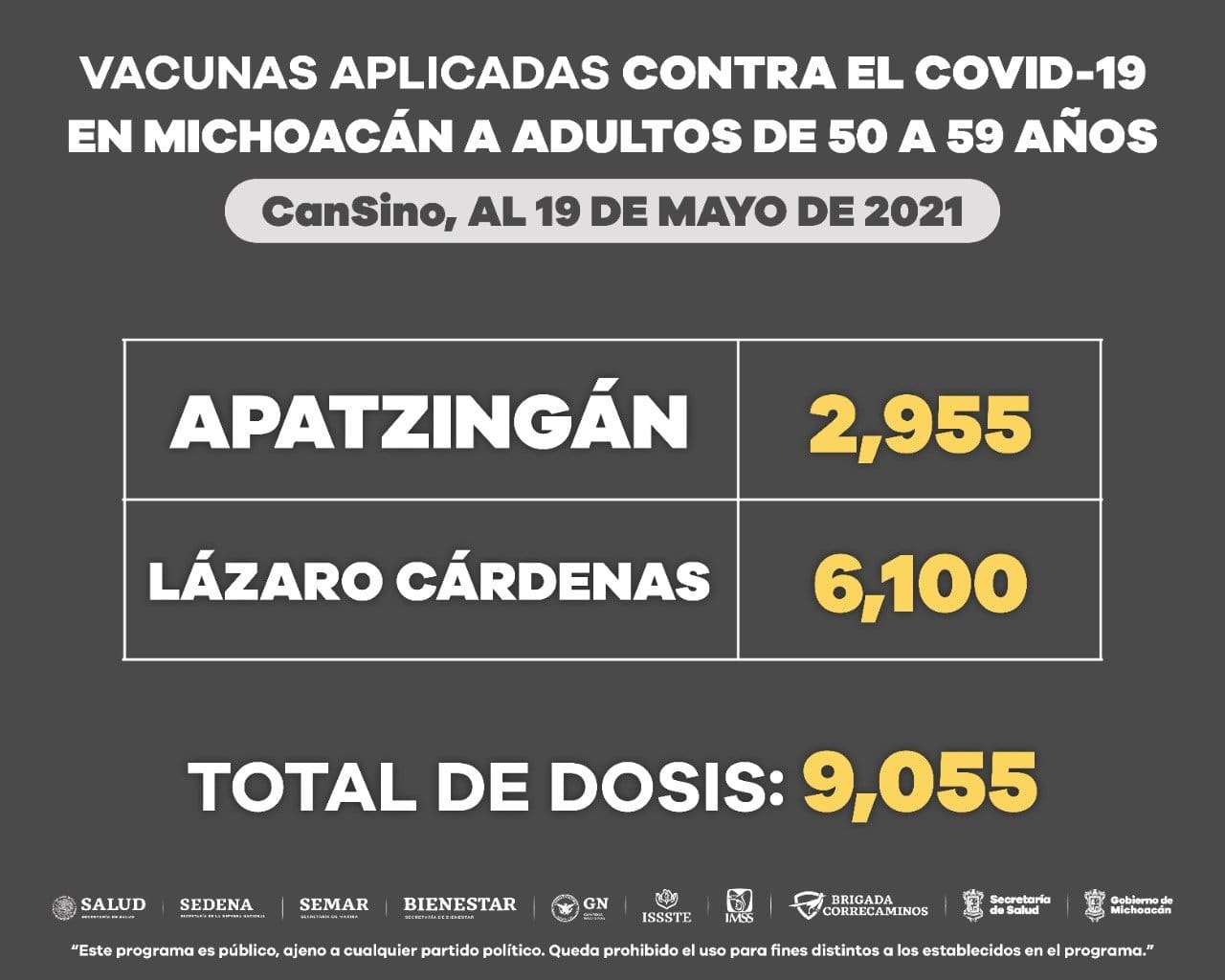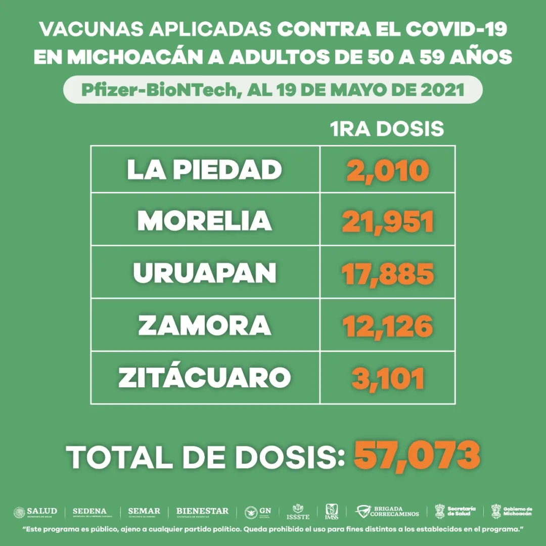 Apatzingán, Lázaro Cárdenas, La Piedad, Morelia, Uruapan, Zamora y Zitácuaro, son los municipios en los que se tienen activos los módulos de vacunación para este sector de la población.